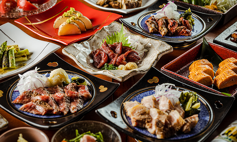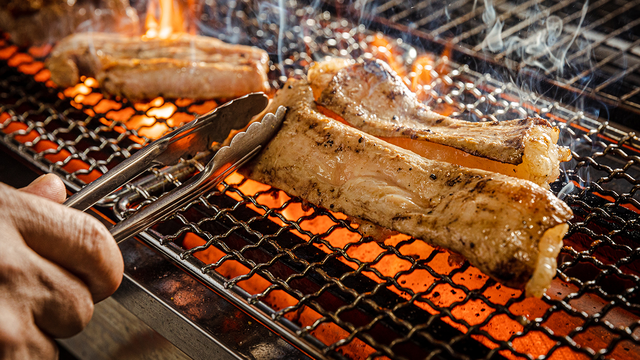 厚切り上タン、牛トモ三角、牛イチボなど日本料理店で長年修業を重ねた職人が目利きする厳選肉を使用しています。目の前で焼く姿は臨場感たっぷり。最も美味しく食べられる焼き加減でご提供いたします。 丁寧に焼いた厚焼き玉子、旬の野菜の旨味を引き出した焼き野菜のアラカルトなどサイドメニューも充実しております。 当店自慢の逸品を是非お愉しみください。
